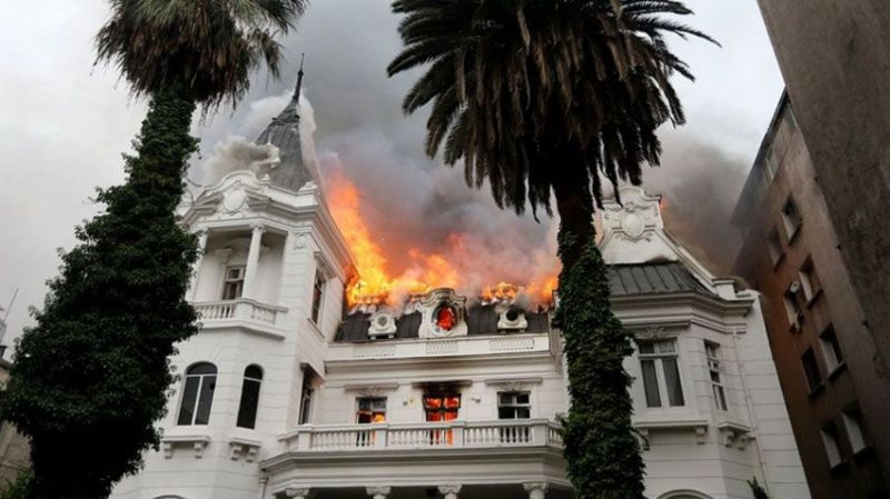 Tiempo de lectura: 39 segundosLa emblemática construcción de la Universidad Pedro de Valdivia arde en llamas en medio de la tensión que ya lleva 21 días en el país trasandino.
