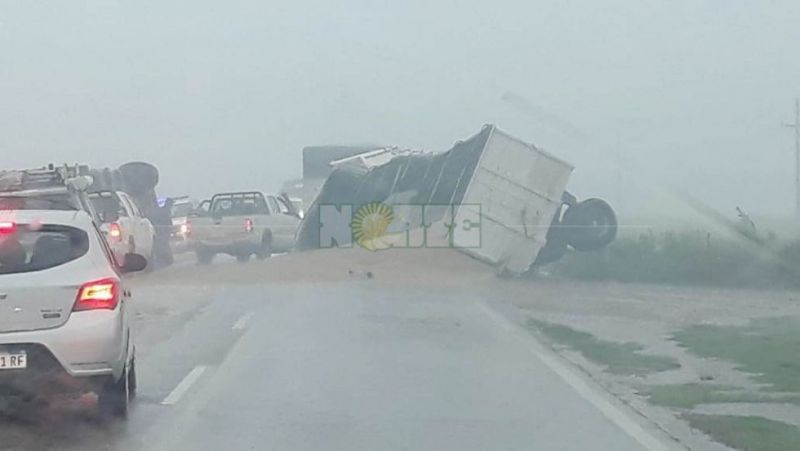 En medio de una fuerte tormenta que sacude el sudoeste, a las 11, se produjo un siniestro vial sobre Ruta 89, entre Charata y Pinedo, en el kilómetro 243. Los protagonistas, un camión IVECO cargad con trigo, cuyo chofer de 34 años es oriundo de Du Graty, y una camioneta.