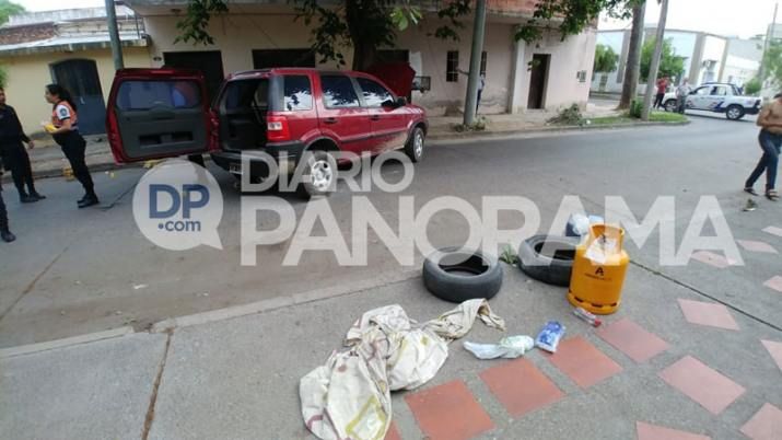 Los ladrones escaparon no sin antes incendiar la camioneta con la que habían cortado el paso del remis. La camioneta no tenia asientos, excepto por el delconductor y en su interior había un bidón de cinco litros de nafta, garrafas de gas y un par de cubiertas usadas.
