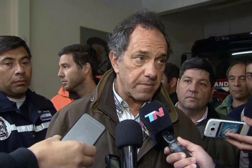 El gobernador bonaerense y candidato presidencial del oficialismo, Daniel Scioli, renovó sus críticas hacia el jefe de gobierno porteño y rival para las elecciones a presidente de octubre, Mauricio Macri, por la reacción que tuvo el líder del PRO respecto de las inundaciones y sus supuestos planes de ajuste.