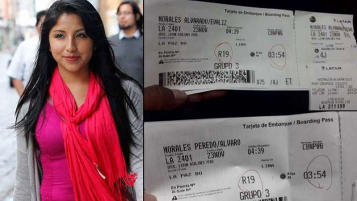 En el tuit también se muestran las fotos de los dos pasajes para Evaliz y Álvaro Morales. El avión salió de La Paz, hará escala en Lima y su destino final será el aeropuerto de Buenos Aires.