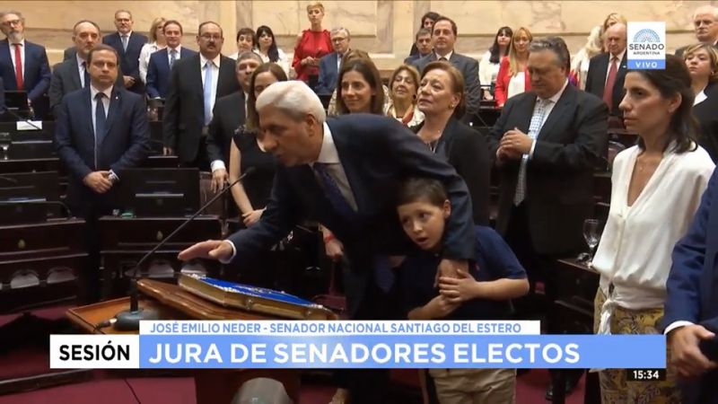 Tras la asunción en el cargo de la Dra. Claudia Ledesma Abdala de Zamora, la titular de la Cámara alta, le tomó el correspondiente juramento al ex vicegobernador de Santiago del Estero, José Emilio Neder.