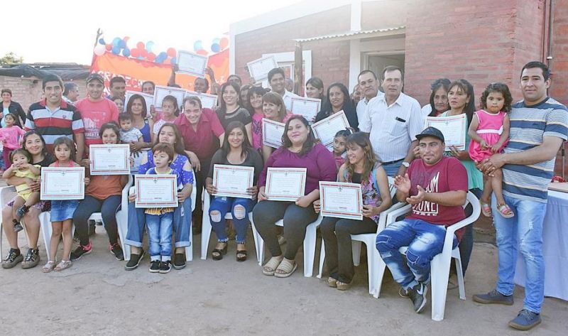 La ceremonia de entrega de llaves y diplomas se realizó en la vivienda de Marisa Cejas del barrio San José y contó con la presencia del ministro de Desarrollo Social, Ángel Niccolai, de representantes de las ONG, beneficiarios y vecinos.