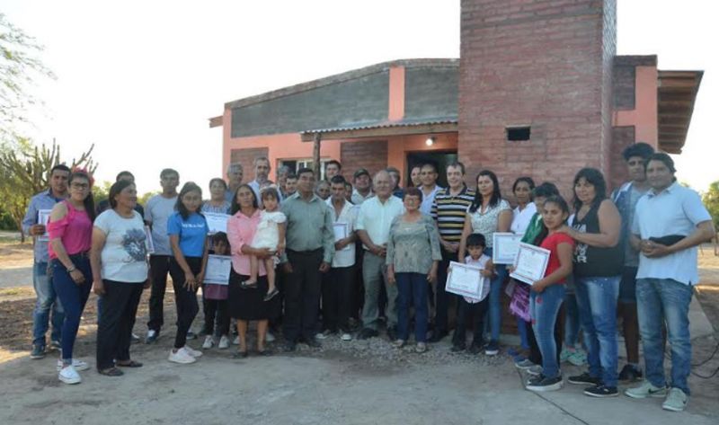 La ceremonia de entrega fue encabezada por el ministro de Desarrollo Social, Dr. Ángel Niccolai, acompañado del comisionado municipal de Lugones; Sergio Leguizamón, vecinos del lugar y los mismos beneficiarios.