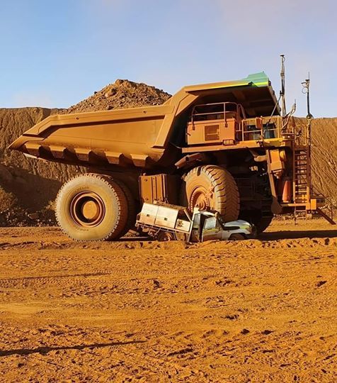 El hombre, quien es trabajador en una excavación de mineral de hierro en Australia Occidental, estaba realizando tareas de mantenimiento en una mina, cuando de repente se descuidó, y sin darse cuenta atropelló su Land Cruiser, que se encontraba aparcado en los alrededores.vEl medio local, compartió una foto desde el lugar del incidente. En la imagen viralizada, se observa que de la camioneta (que tiene el mismo tamaño que la rueda del camión) no quedó casi nada. Por su parte, el autovolquete se ve perfectamente bien, como si no hubiese recibido un solo rasguño.