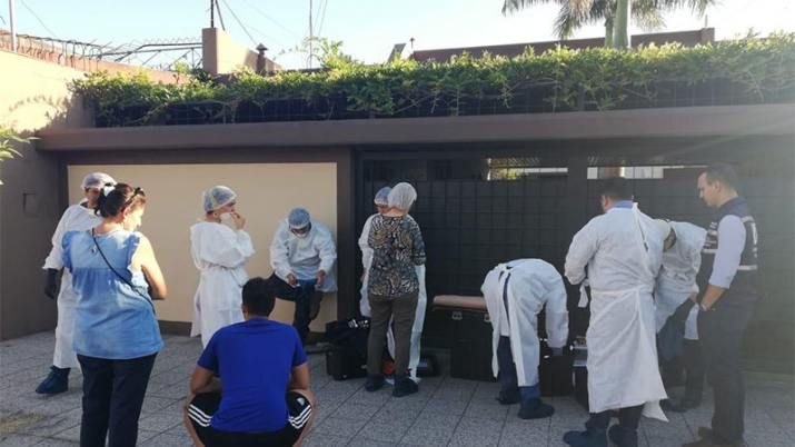 En esas circunstancias, un grupo de policías fueron hasta la casa acompañados por el hombre, pero al no obtener respuestas al llamado del timbre, un oficial ingresó por el fondo, rompió una puerta y encontró a la mujer asesinada y amordazada, sobre una bolsa negra.