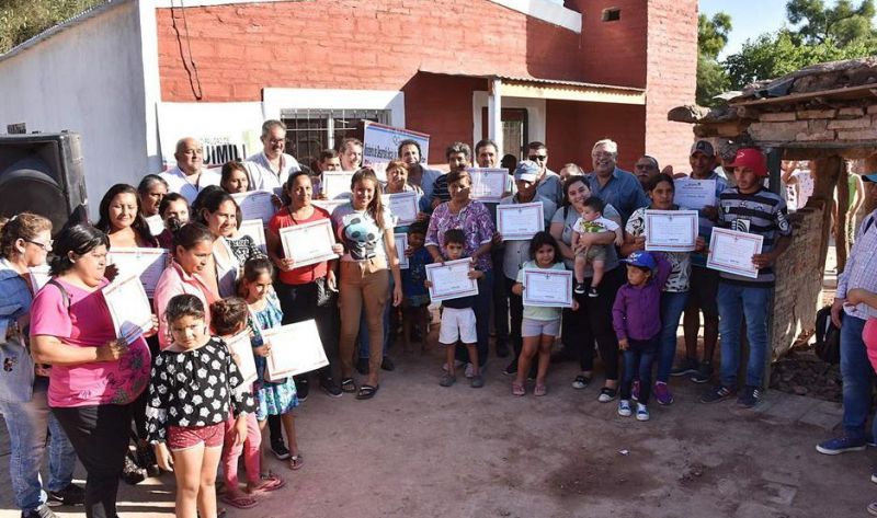 El primer acto se realizó en paraje El Simbolar en el domicilio de Marilín Banegas. Fue encabezado por el ministro de Desarrollo Social, Dr. Ángel Niccolai, acompañado por el intendente Omar Fantoni y beneficiarios de los parajes El Simbolar, El Fisco, El 5, Santa Rosa, Roldán, Cejolao y El 110.