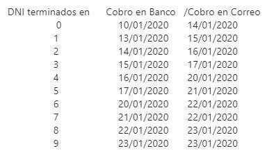 A continuación se transcribe el calendario de los pagos establecidos por la Administración Nacional de la Seguridad Social (ANSES) para la asignación universal por hijo correspondiente al mes de Enero de 2020.