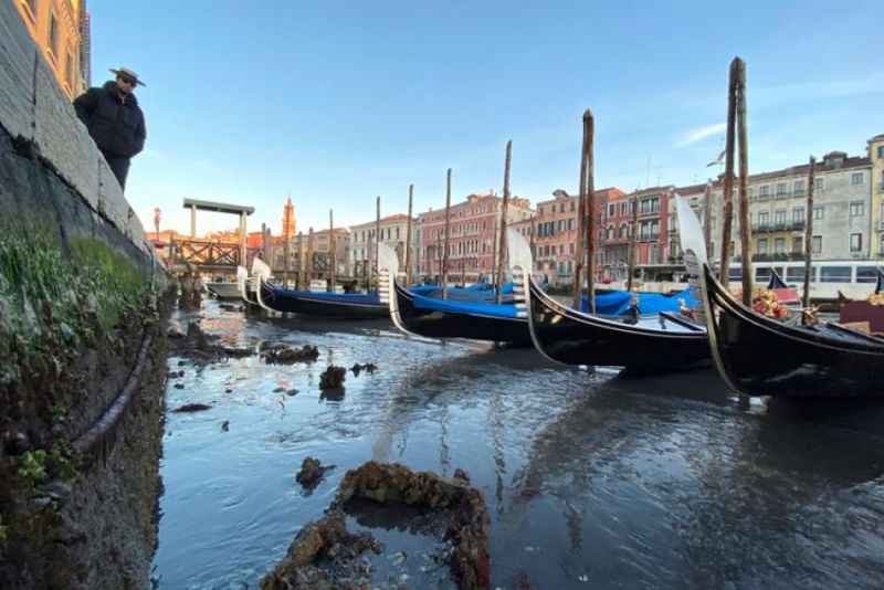 Luego de las inundaciones de noviembre y diciembre de 2019, que dejaron a Venecia con un nivel de agua que alcanzó casi los 1,90 metros, muchos canales de la ciudad italiana se encuentran con una marea excepcionalmente baja debido a un fenómeno habitual para esta época del año.