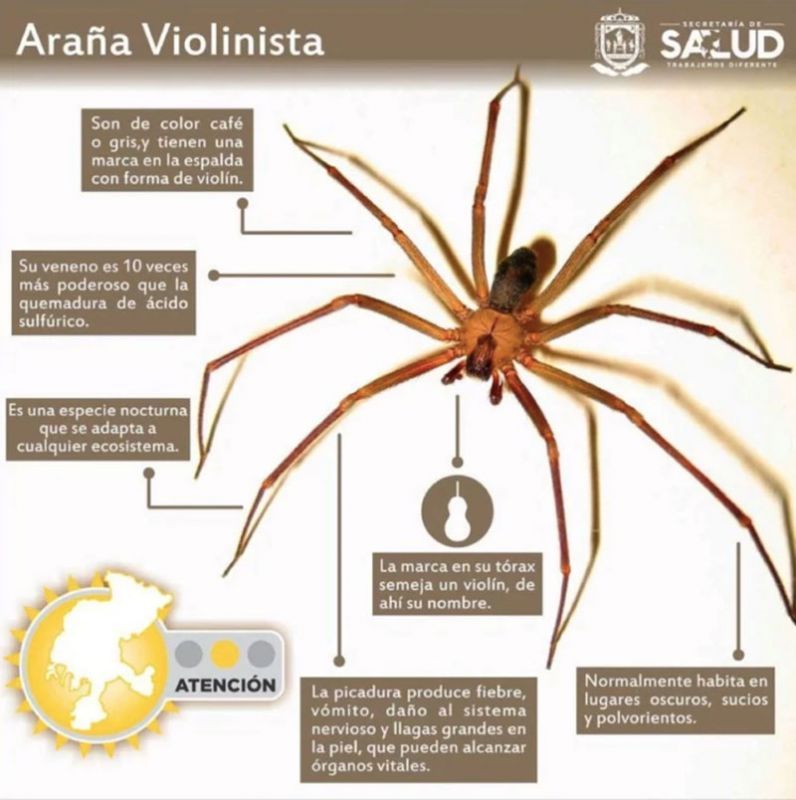 La “araña del rincón”, que pertenece a la especie Loxosceles, es llamada de esa manera por su capacidad de esconderse en zócalos, grietas y rincones de difícil acceso y poca higiene. Son de color marrón claro, no miden más de 3 centímetros, se mueven velozmente y tienen la cola ligeramente alargada y peluda. Suelen aparecer en épocas de temperaturas elevadas y en lugares con poco luz. También es conocida como “araña violinista”, por la forma que toma la herida de su mordedura en la piel.