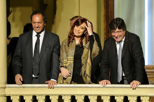 Allí se mostró con Scioli, el ministro de Economía, Axel Kicillof, y el jefe de Gabinete y candidato a gobernador bonaerense, Aníbal Fernández.