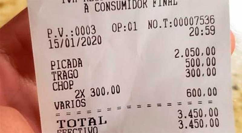 Según la descripción, quienes postearon el ticket más que indignación tendrían envidia porque ella les cobró $3.450 por una picada, un fernet con cola, dos cervezas y dos tragos.