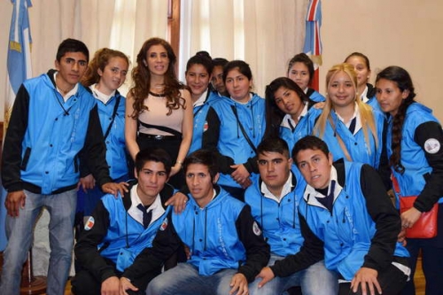 La mandataria tuvo una amena reunión en el Salón de Acuerdos con los 50 alumnos del quinto año, los que lucieron sus tradicionales indumentarias de fin de curso, obsequiadas oportunamente por la gobernadora.
