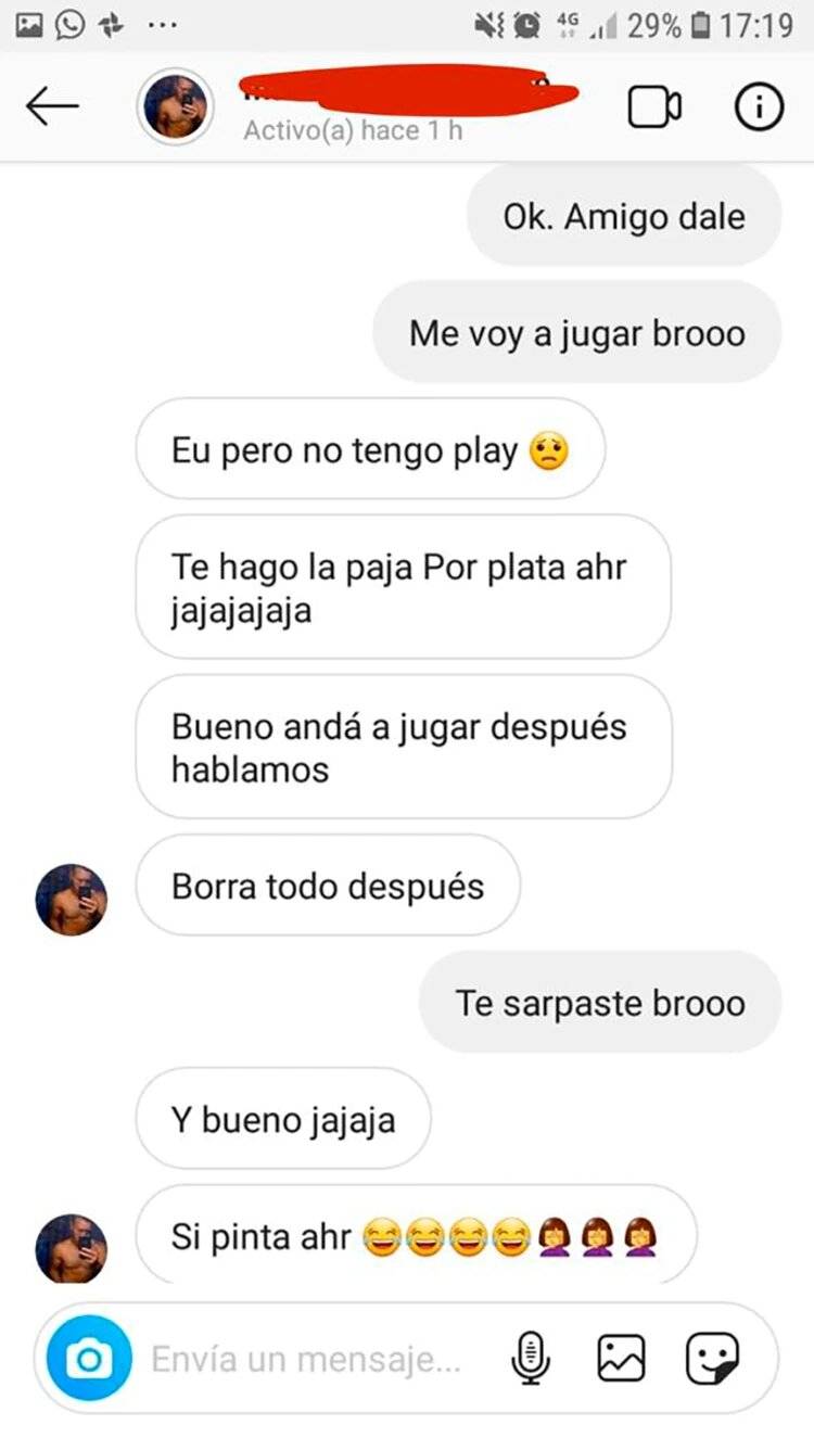 -“holaa broo”, escribió el acosador