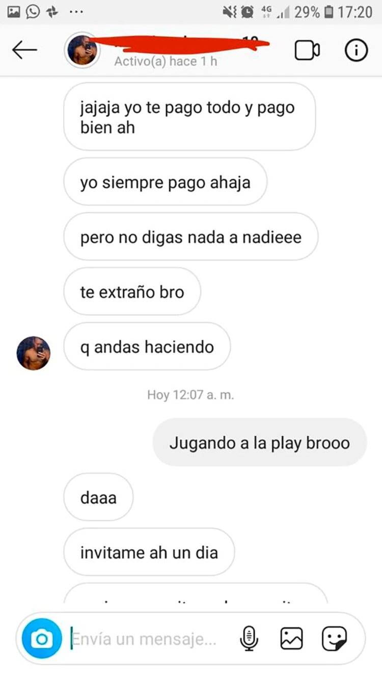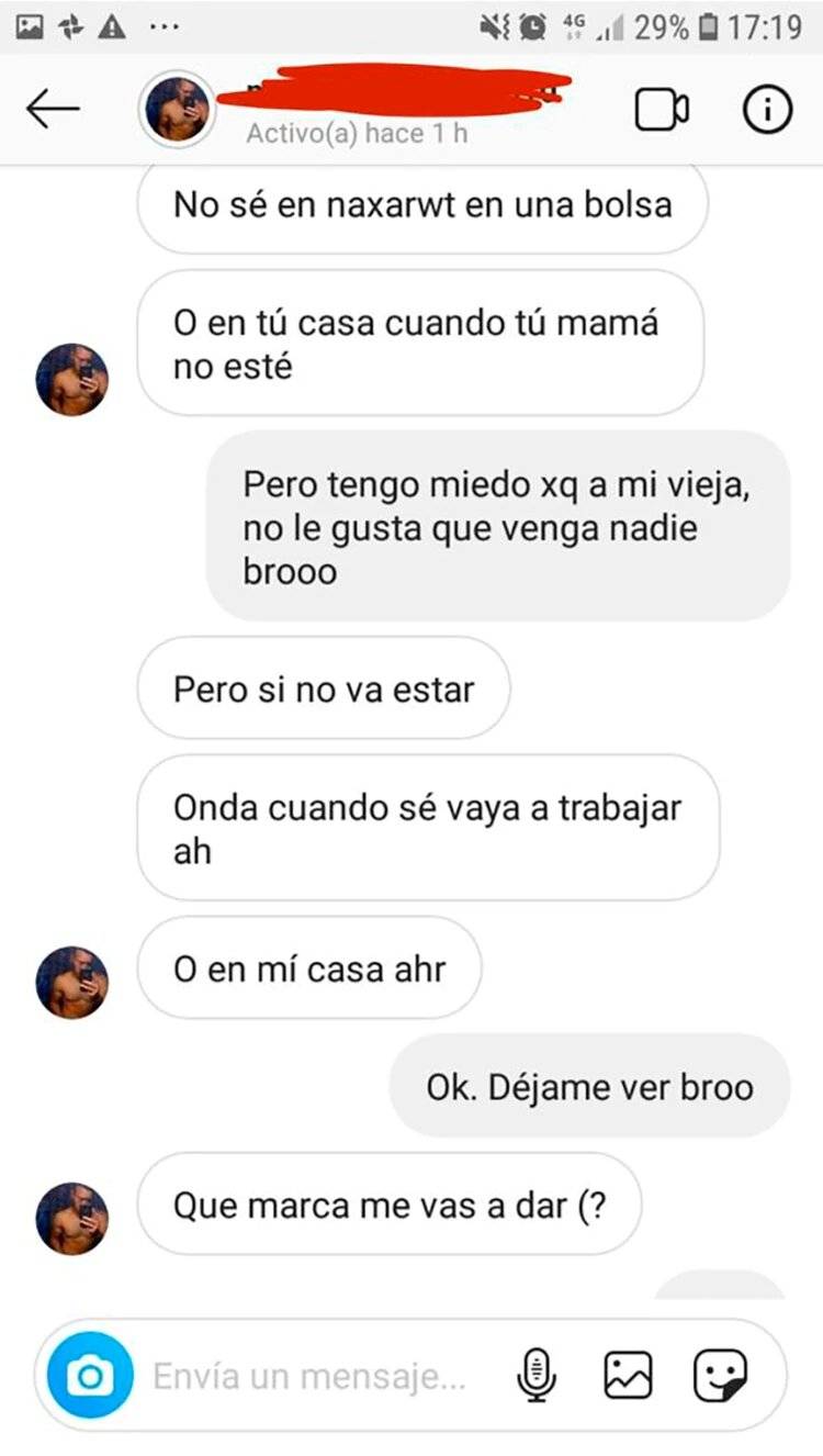 “El mensaje decía ´hola cómo estás bebé, tenemos que encontrarnos y un corazón’. Lo que más me llamó la atención es que decía 'necesito que me regales un boxer´. Empiezo a mirar el perfil y me llamó la atención. Ahí veo el gimnasio donde va mi hijastro a jugar al fútbol. Esta persona hacía fierros ahí y tengo entendido que hacía dos meses le pidieron que dejara de ir porque siempre se rodeaba de menores”, contó.