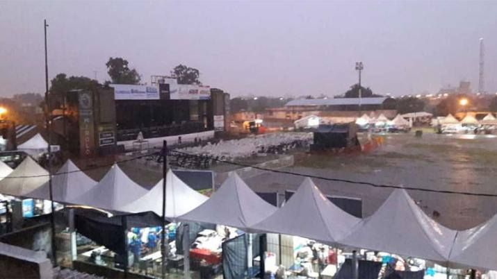 Luego de un gran inicio de la primera velada festivalera, la lluvia obligó a suspender el espectáculo, fundamentalmente por razones de seguridad para el público que ya había ingresado al estadio del Club Sarmiento, como también de mucha gente que se encontraba en las inmediaciones con deseos de disfrutar de los artistas.