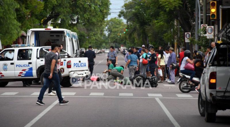 Un terrible accidente de tránsito se produjo este jueves a la tarde, cerca de las 17, en la esquina de avenida Moreno y Sarmiento, en la ciudad Capital.