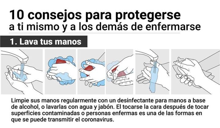 Tiempo de lectura: 1 minuto, 47 segundos3 DE MARZO 2020 - 15:32 Lavarse las manos, limpiar las superficies más utilizadas, consultar al médico ante fiebre y tos sostenida e informarse a través de fuentes confiables, son algunas de las medidas que remarcó la Organización Mundial de la Salud