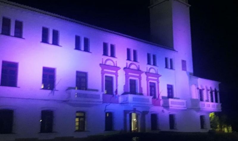 La Casa de Gobierno se encuentra iluminada de color violeta en adhesión al Día Internacional de la Mujer que se celebra el 8 de marzo.