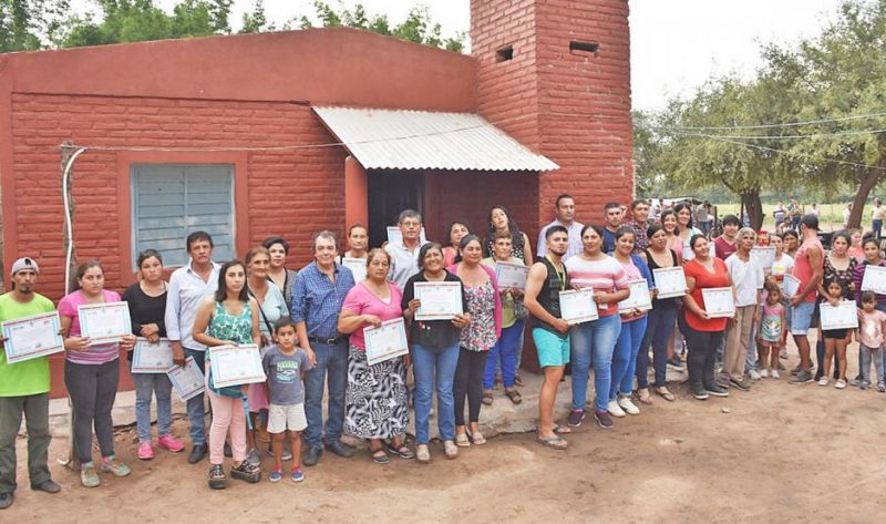 Durante un acto que se cumplió en la localidad de El Arenal, departamento Jiménez, se entregaron 29 viviendas sociales, totalmente amobladas, que benefician a familias de San Juan, San Antonio, Tusca Pozo, El Bobadal, Rincón Grande, Bajo Alegre, Fisco Norte, Fisco Sur y El Arenal.