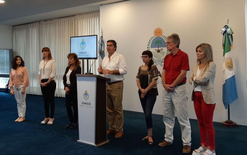 En el Salón Obligado, tras la reunión de la comisión conformada por múltiples actores económicos, sociales, políticos, Capitanich ofreció una rueda de prensa acompañado por la vicegobernadora Analía Rach Quiroga, las ministras Paola Benítez (Salud Pública), Daniela Torrente (Educación), Gloria Zalazar (Seguridad y Justicia); el presidente de la Cámara de Diputados, Hugo Sager y la presidenta del STJ, Isabel Grillo.