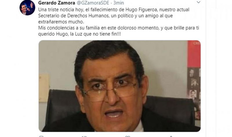 El gobernador de Santiago del Estero, Dr. Gerardo Zamora, lamentó el deceso de uno de sus principales funcionarios: Hugo Figueroa, quien se desempeñaba como Secretario de Derechos Humanos de la Provincia.
