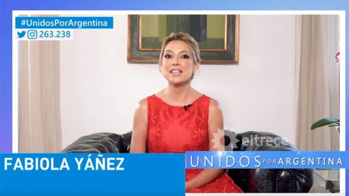 Tras destacar el rol de los conductores y artistas, Fabiola Yáñez resaltó el trabajo de la Cruz Roja Argentina: “Son los encargados de controlar y auditar la transparencia en la compra de todos los insumos que sean necesarios”. Por último agradeció "por estar ahí a la sociedad que está dando un salto enorme en su evolución. Hoy es momento de humanidad, hoy todos sin distinción alguna luchamos por una única razón: la vida.