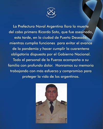 Tiempo de lectura: 51 segundosUn efectivo de la Prefectura Naval fue asesinado este viernes de un balazo mientras realizaba controles vehiculares en el marco de la cuarentena obligatoria en la ciudad santacrucense de Puerto Deseado.