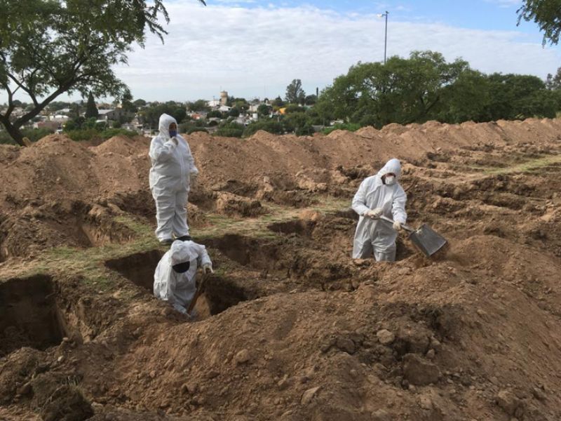 Córdoba, 11 (NA) - Empleados de la Municipalidad de la ciudad de Córdoba y efectivos del Ejército Argentino comenzaron a cavar unas cien fosas por día en el Cementerio San Vicente para prevenir eventuales fallecimientos masivos por la pandemia del coronavirus Covid-19.