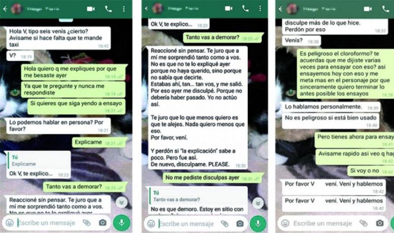 Como la adolescente luego dejó de contestarle los mensajes, mientras él le insistía de hablarlo en persona, él comenzó a escribirle mensajes extensos donde trataba de “justificar” su accionar, argumentaba situaciones de una enfermedad personal, que la cuarentena lo hizo reflexionar, le pedía disculpas, y continuaba preguntándole por el “proyecto” del cortometraje.