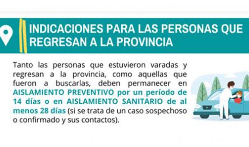 El organismo provincial indica que deben permanecer en aislamiento preventivo por un período de 14 días o en aislamiento sanitario de al menos 28 días, esto si se trata de un caso sospechoso o confirmado y sus contactos.