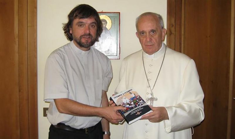 El Padre Pepe, junto a otros sacerdotes, durante un encuentro con el Presidente de la Nación.