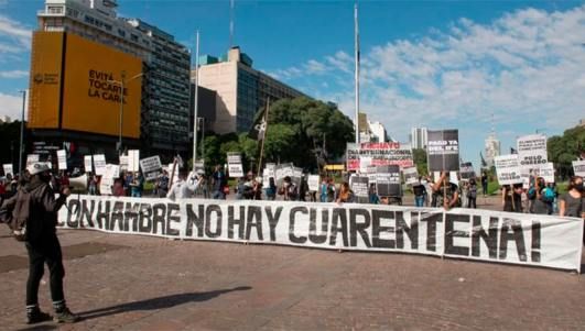 Días atrás, durante el feriado del viernes 1 de Mayo, el Polo Obrero ya se había concentrado en la plazoleta frente al Obelisco porteño para llamar la atención sobre la deteriorada situación social y económica en los barrios. “Con hambre no hay cuarentena”, es la consigna de la organización que integra el Frente de Izquierda y los Trabajadores (FIT).
