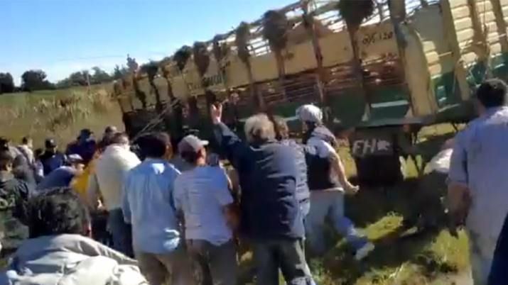 Según informó el diario La Capital, más de 50 personas llegaron al lugar y, al mismo tiempo que algunos colaboraban para retornar el acoplado a su posición natural, otros empezaban a carnear a los animales.