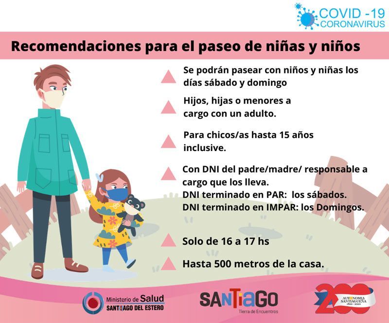 Los chicos podrán moverse por 500 metros desde las 16 hasta las 17 horas, según indica el decreto del Gobierno en el marco de la flexibilización del aislamiento social, preventivo y obligatorio por la pandemia del coronavirus.