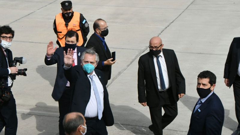 El presidente Fernández arribó a las 12.18 al aeropuerto Vicecomodoro Ángel Aragonés, acompañado por los ministros Wadro de Pedro y Gabriel Katopodis. Fue recibido por el gobernador Gerardo Zamora.En la comitiva santiagueña que recibió a Fernández también estuvieron el vicegobernador Carlos Silva Neder, los ministros Chara, Nassif, la Dra. Matilde Omill y Barbur.