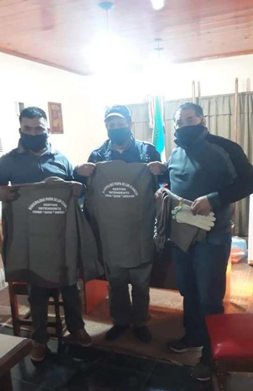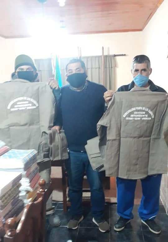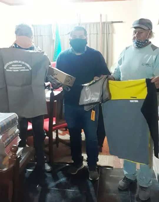 El Intendente Cesar Andrada realizò personalmente la entrega a los empleados comunales. #QuedateEnCasa.