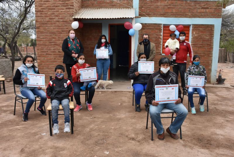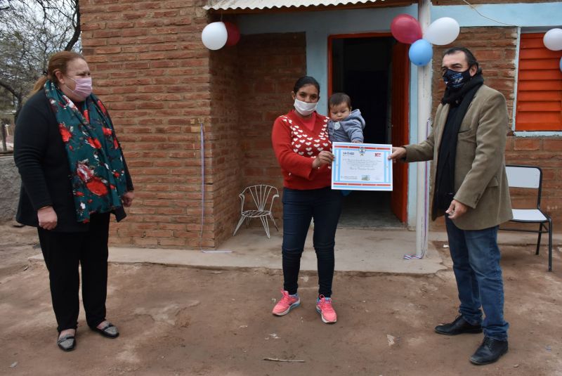 La entrega de llaves a los beneficiarios se realizó siguiendo estrictas medidas de seguridad del distanciamiento social por la pandemia del Covid – 19 y fue encabezada por el ministro de Desarrollo Social, Dr. Ángel Niccolai acompañando por la intendente de Suncho Corral, Estela Protti.