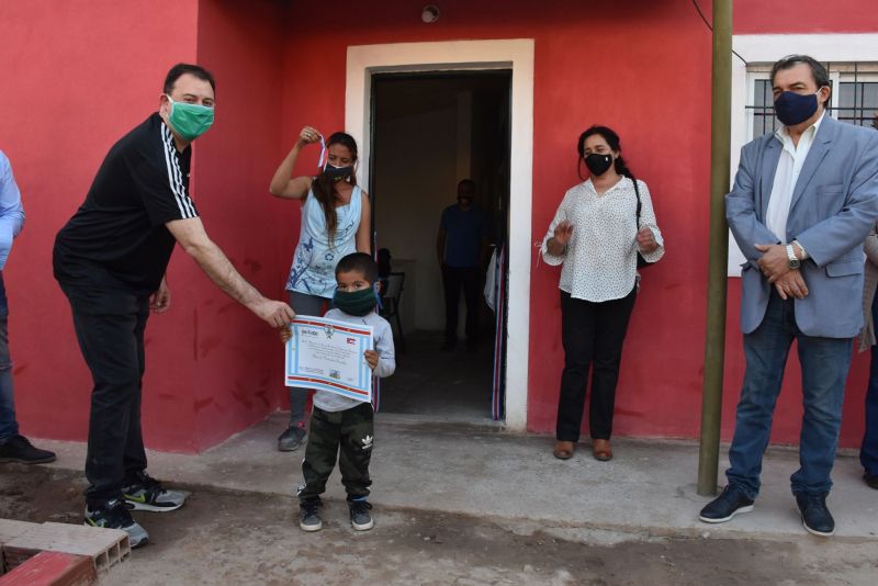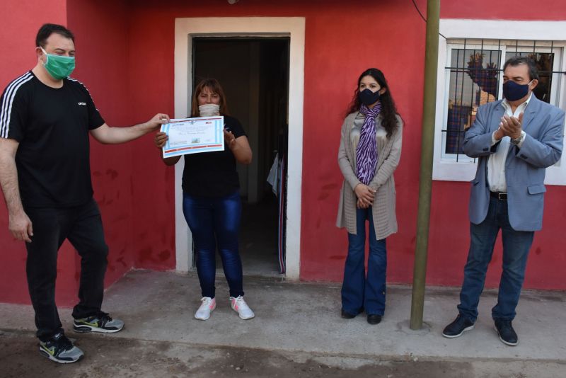 Respetando los protocolos de distanciamiento social, se llevó a cabo la entrega de llaves a los diferentes adjudicatarios. Margarita Fernández destacó “estoy muy feliz de tener una vivienda, y gracias a Dios, pude cumplir mi sueño. Yo tenía una casita precaria, que se llovía por todos lados, tengo un niño que padece una discapacidad, y las condiciones no eran las más aptas para él y nuestra familia. Estamos muy contentos de poder disfrutar de una nueva vivienda hermosa de hoy en adelante“.