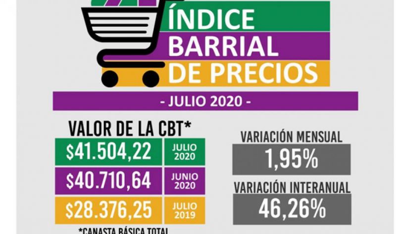 Agregó que “la variación acumulada en los siete meses transcurridos del año 2020 en cuanto a la Canasta Básica Total (CBT); que abarca transporte, salud, indumentaria, educación, entre otros gastos que pueden presentarse, tuvo un aumento del 25,3%”.