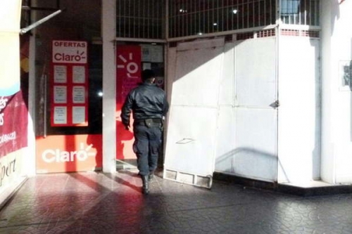 Apenas 20 segundos les demandó librarse de la puerta, merced a una barreta con la cual pudieron tomar total control del negocio en tiempo récord.