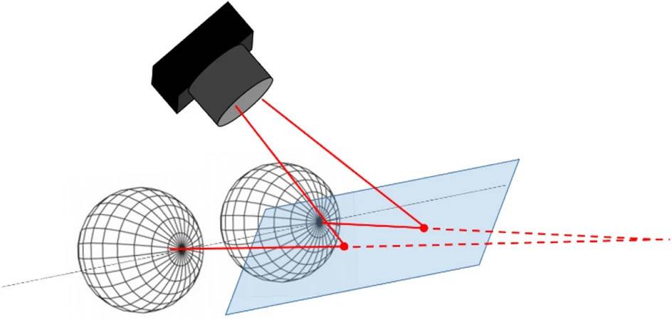 Una cámara rastrea el desplazamiento de los láser proyectados sobre los cristales de anteojos.