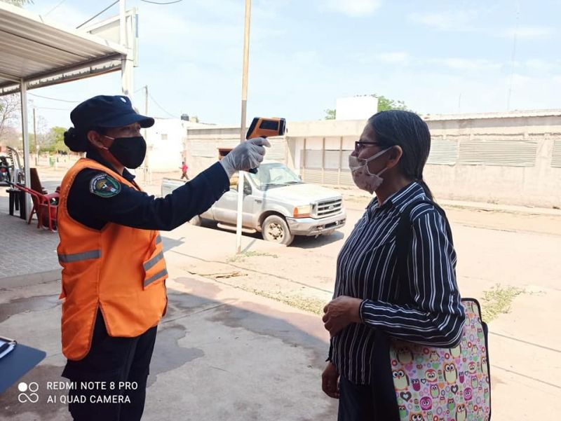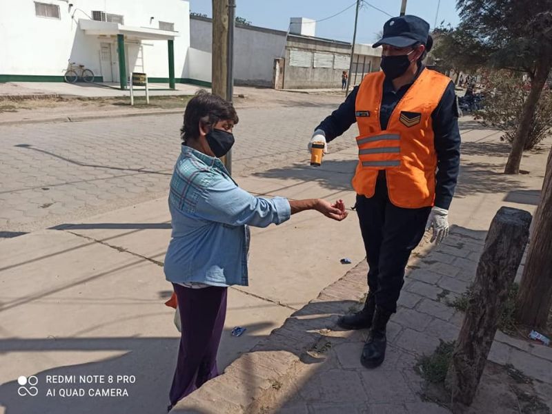 Tiempo de lectura: 9 segundosPersonal Policial de la Comisaría N° 18 coordinado con la Municipalidad y el Hospital Zonal se encuentran registrando la temperatura, indicando la distancia social