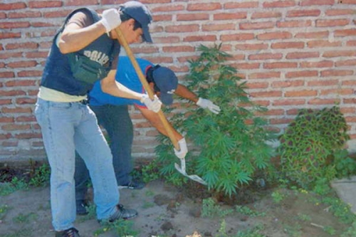 Una denuncia por un caso de violencia intrafamiliar dejó al descubierto que un joven -residente en el Bº Finca de Ramos- utilizaba la parte posterior de su casa para cultivar plantas de marihuana.