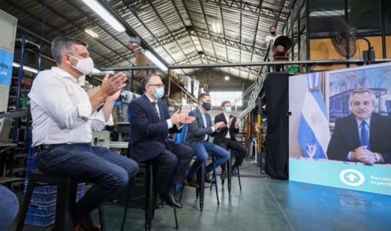 El mandatario encabezó hoy el acto de lanzamiento del Plan de Reactivación e Inclusión Financiera para Pymes -que tuvo su escenario principal en la planta de la empresa TACSA de Hurlingham- por intermedio de una videoconferencia desde la residencia presidencial de Olivos, donde se encuentra aislado tras ser considerado contacto estrecho de un caso positivo de coronavirus.