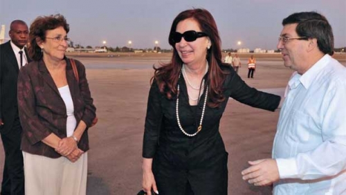 La presidenta Cristina Fernández de Kirchner llegó hoy a las 09:08 hora local al aeropuerto internacional José Martí de La Habana. Fue recibida por la embajadora en Cuba, Juliana I. Marino, y el funcionario cubano de la Dirección de Protocolo, Luis G. Varona Almeida. Se hospeda en el HOTEL NACIONAL.