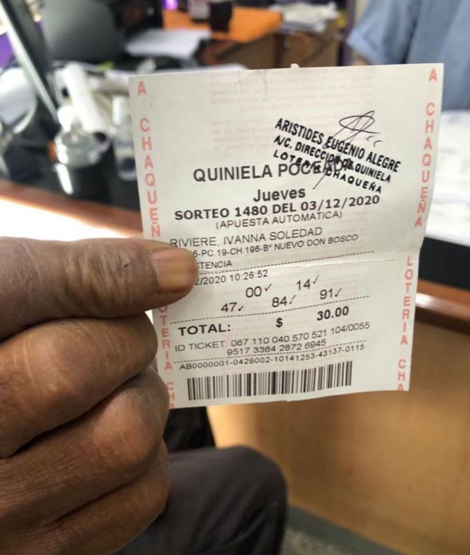 Tras una extenuante jornada laboral, el hombre se dirigió hasta la Subagencia 429-02 de Ivanna Soledad Riviere, ubicada en el mismo barrio, y realizó una jugada automática, con los números 00, 14, 47, 84 y 91. Gracias a esta combinación, el hombre se llevó un pozo acumulado de 5.498.355 pesos.