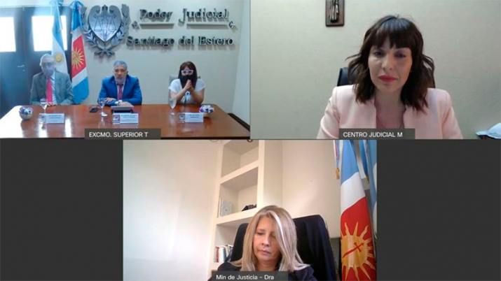 La misma se llevo a cabo por videoconferencia, la que se desarrolló a través de la plataforma Cisco Webex Meetings, y estuvo encabezada por el presidente del Alto Cuerpo, Dr. Federico López Alzogaray y la Ministra de Justicia provincial, Dra. Matilde O`Mill. También formaron parte los Dres. Eduardo José Ramón Llugdar y Ana Rosa Rodríguez, Vice Presidente Primero y segundo del STJ y en representación del Centro Judicial de Monte Quemado la jueza de Control y Garantías Dra. Valeria Díaz.