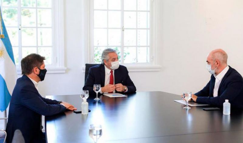 El presidente Alberto Fernández recibió en la Quinta de Olivos al gobernador de Buenos Aires, Axel Kicillof, y el jefe de Gobierno de la Ciudad de Buenos Aires, Horacio Rodríguez Larreta, para analizar el aumento de casos de coronavirus en las últimas semanas.