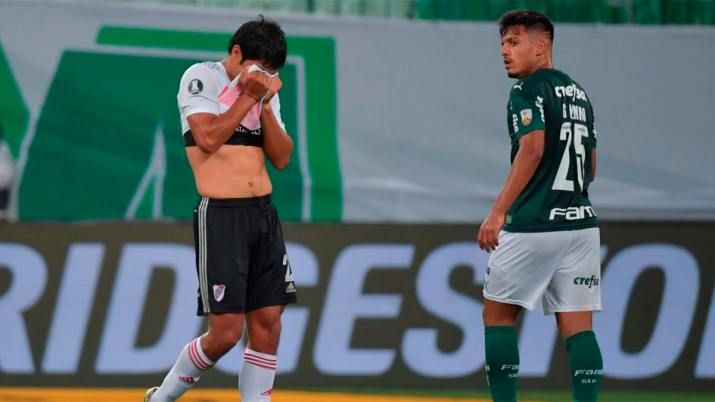 Sin embargo con 10 hombres River siguió yendo y dominando a un Palmeiras que en la previa fue respaldado por sus hinchas en las inmediaciones del Allianz Parque y adentro colocó banderas con símbolos que daban cuenta de haber ganado anticipadamente esta edición de la Libertadores.